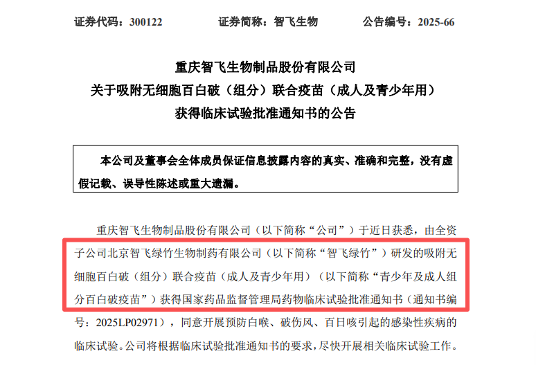 近日,智飛生物全資子公司北京智飛綠竹生物制藥有限公司(以下簡稱“智飛綠竹”)研發的吸附無細胞百白破(組分)聯合疫苗(成人及青少年用)(以下簡稱“青少年及成人組分百白破疫苗”)正式獲得國家藥品監督管理局臨床試驗許可,標志著我國在青少年及成人百白破免疫保護領域邁出關鍵一步。天勤生物武漢分公司為該項目提供了全套毒理學研究服務,以專業能力為疫苗的臨床獲批精準護航。瞄準市場空白,破解 “免疫斷層”痛點在我國,兒童百白破疫苗接種已廣泛普及,但針對青少年及成人的加強免疫產品長期缺位,形成了顯著的“免疫斷層”。這一空白不僅導致百日咳在青少年及成年人群中的感染日益普遍,也為公共衛生帶來了潛在風險。此次進入臨床階段的組分百白破疫苗,采用單獨純化的百日咳有效組分,聯合白喉、破傷風類毒素,以更精準的組分設計與更穩定的質量體系,旨在為7歲及以上健康人群提供加強免疫的新選擇。截至目前,國內尚無同類產品上市,該疫苗有望率先打破市場空白,重塑全生命周期百白破免疫防護格局。深耕毒理學研究,天勤生物護航疫苗研發天勤生物武漢分公司深耕疫苗及生物制品毒理學研究領域多年,積累了豐富的實戰經驗,構建了完善的技術服務體系。在本次合...